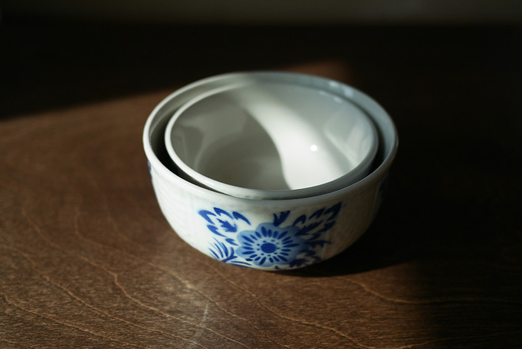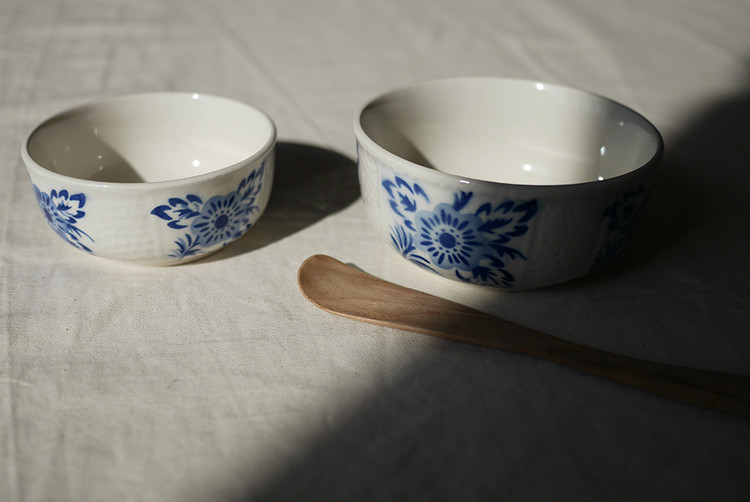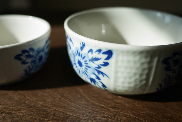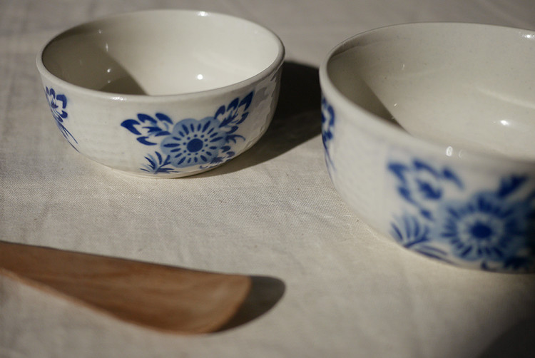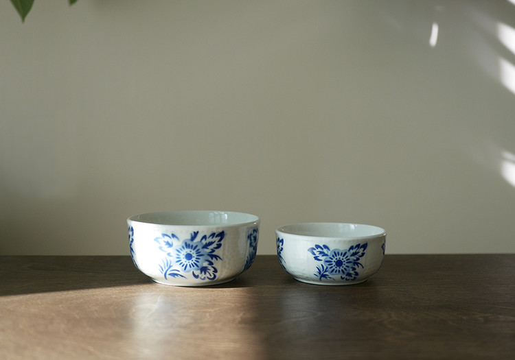 클래식한 셰입과 블루 플라워 모티브가