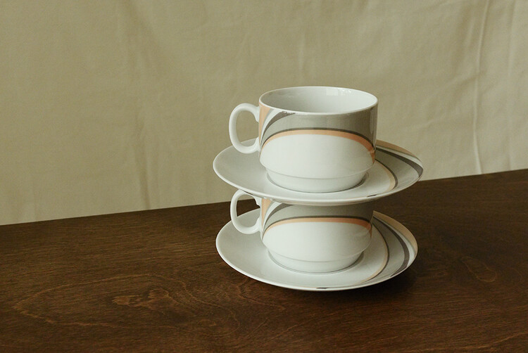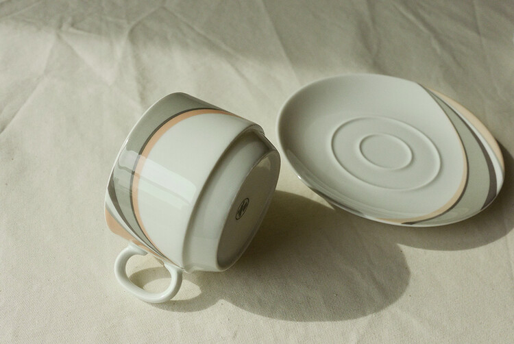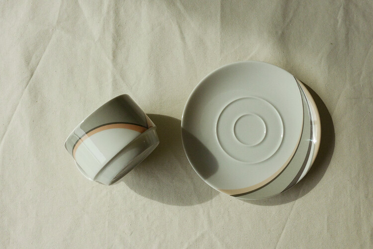 화이트 바탕에 피치, 그레이톤의 라인들이 멋스럽게 배치되어