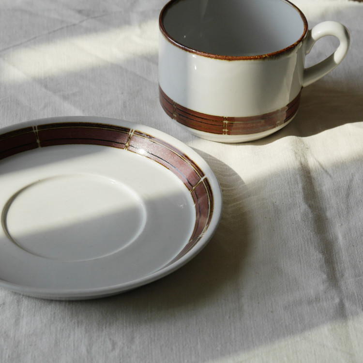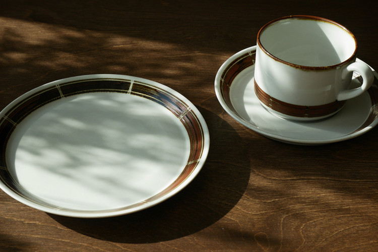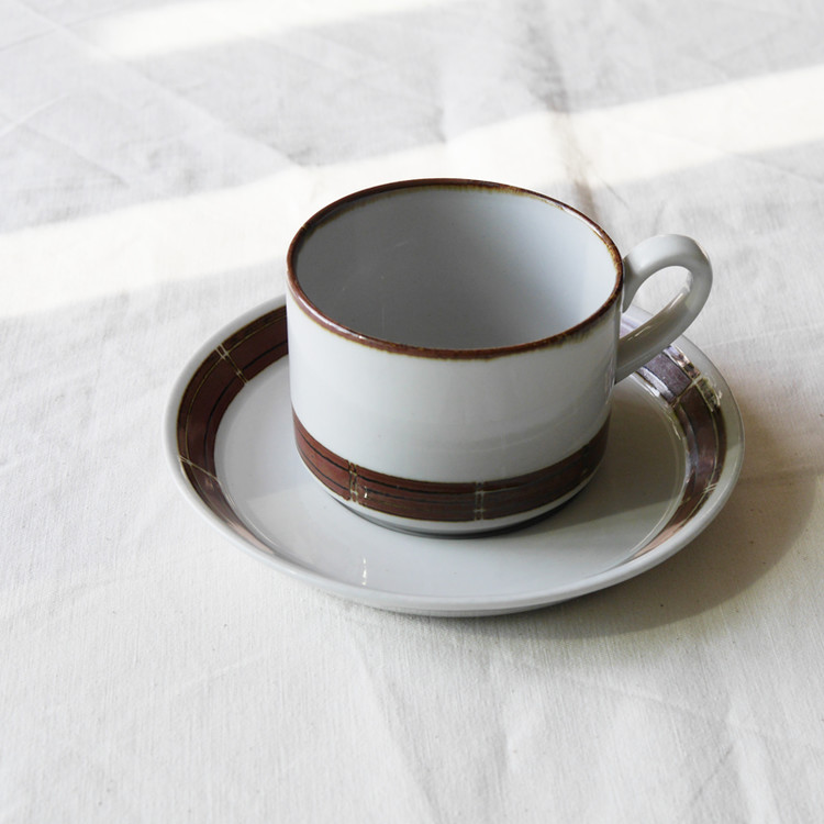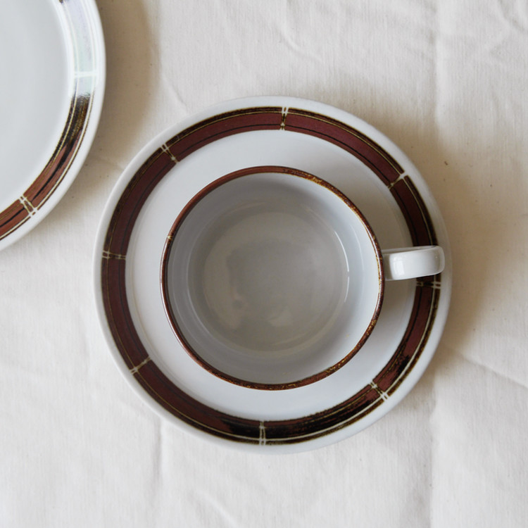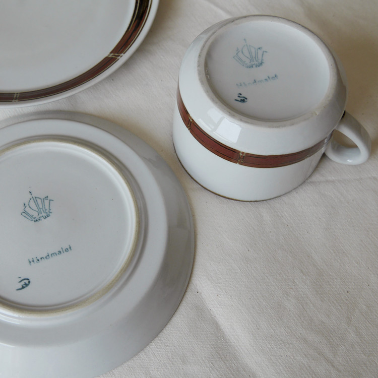 덴마크에서 생산된 컵과 소서, 플레이트 세트입니다.