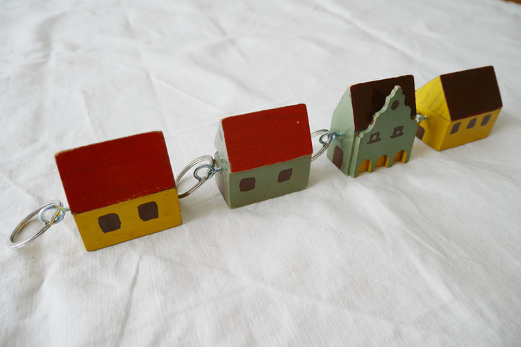 빈티지 우든 블럭으로 만든 키 링입니다.